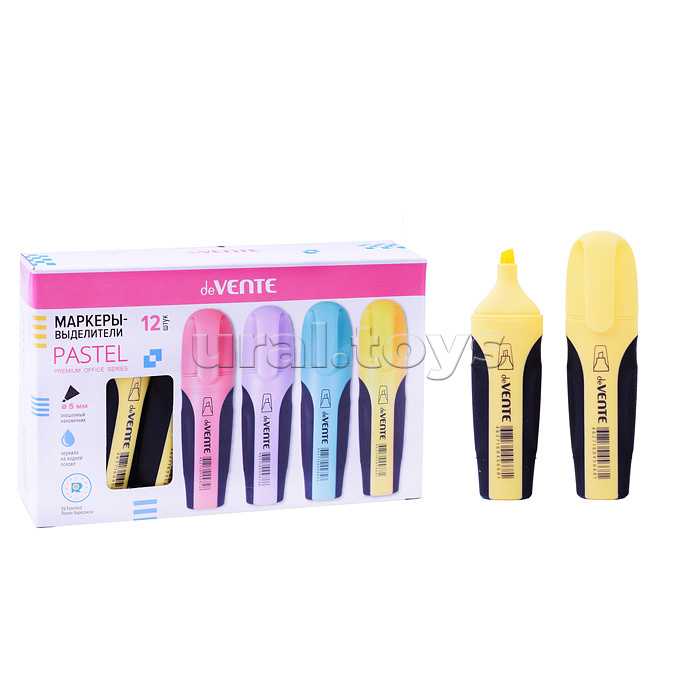 Маркер-выделитель "Pastel" плоский корпус с эргономичными каучуковыми вставками, скошенный наконечник, ширина линии 1-5 мм, пастельный желтый