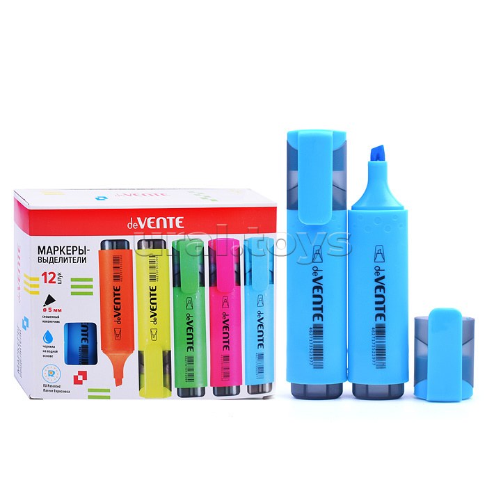 Маркер-выделитель плоский корпус, скошенный наконечник, ширина линии 1-5 мм, голубой