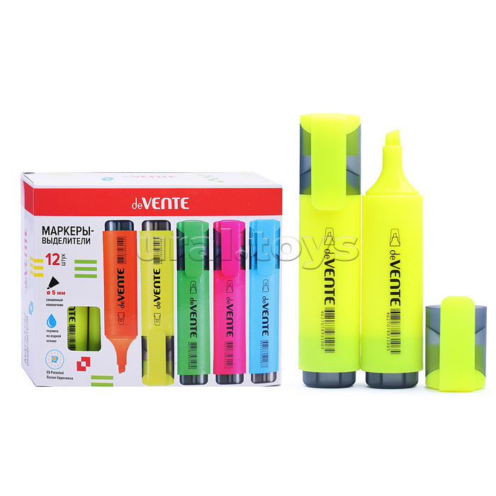 Маркер-выделитель плоский корпус, скошенный наконечник, ширина линии 1-5 мм, желтый