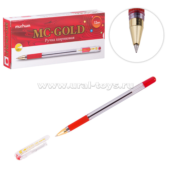 Ручка шариковая "MC Gold" красная, 0,5мм, грип