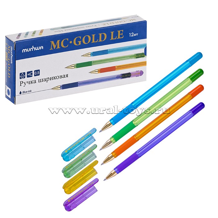 Ручка шариковая "МС Gold LE" синяя 0,5мм, грип, штрих-код, корпус ассорти