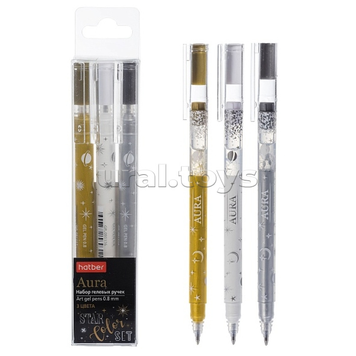 Набор гелевых ручек "Aura" 0,8мм 3 шт. (золото, серебро, белая) в индивидуальной упаковке