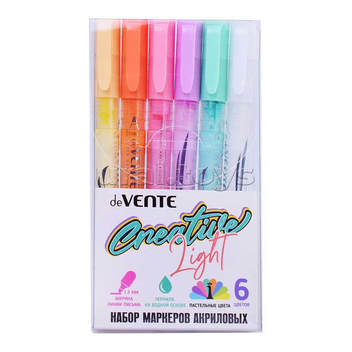 Набор маркеров акриловых 6 цв. пастельных, круглый корпус, пулевидный наконечник, ширина линии 1,5 мм.