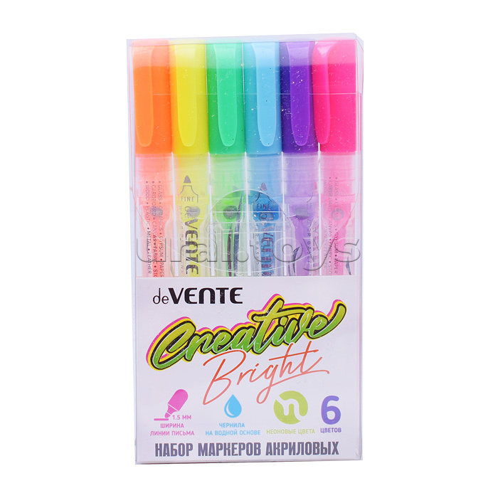 Набор маркеров акриловых 6 классических цветов, круглый корпус, пулевидный наконечник, ширина линии 1,5 мм, в пластиковой упаковке