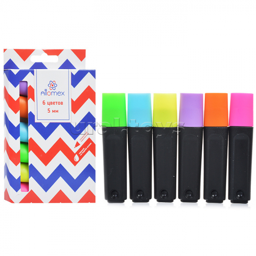 Набор маркеров-выделителей 23 цвета (8 неоновых, 8 пастельных, 7 классических светлых цветов) плоский корпус, скошенный наконечник, ширина линии 1-5 мм, на поддоне в пластиковой коробке