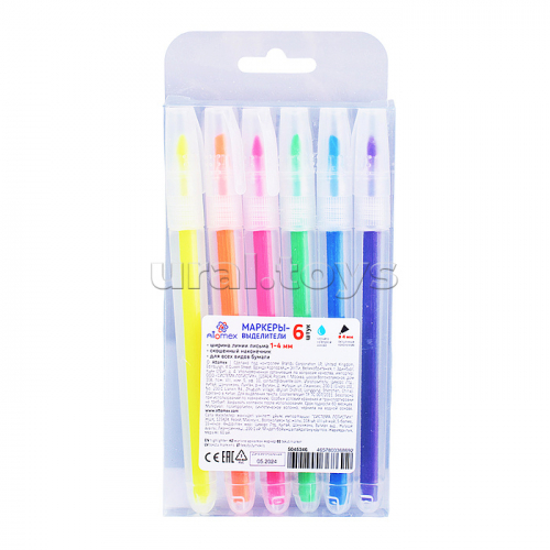 Набор маркеров-выделителей "Attomex" (06 цв - желт, роз, зел, оранж, голуб, сирен) круглый корпус