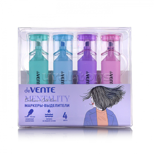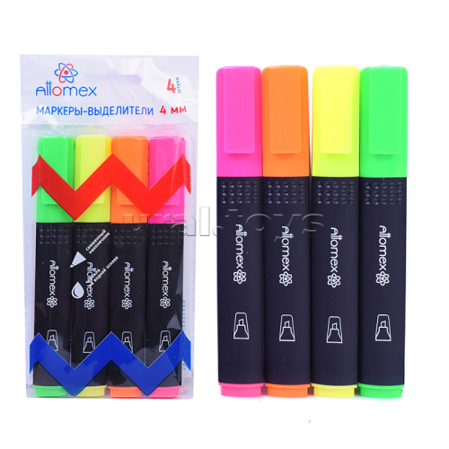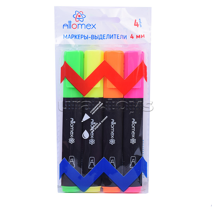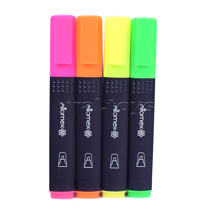 Набор маркеров-выделителей "Attomex" (4 цв - желт, зел, оран, роз) плоский корпус с клипом, скошенный наконечник, ширина линии 1-4 мм, в пластиковом блистере