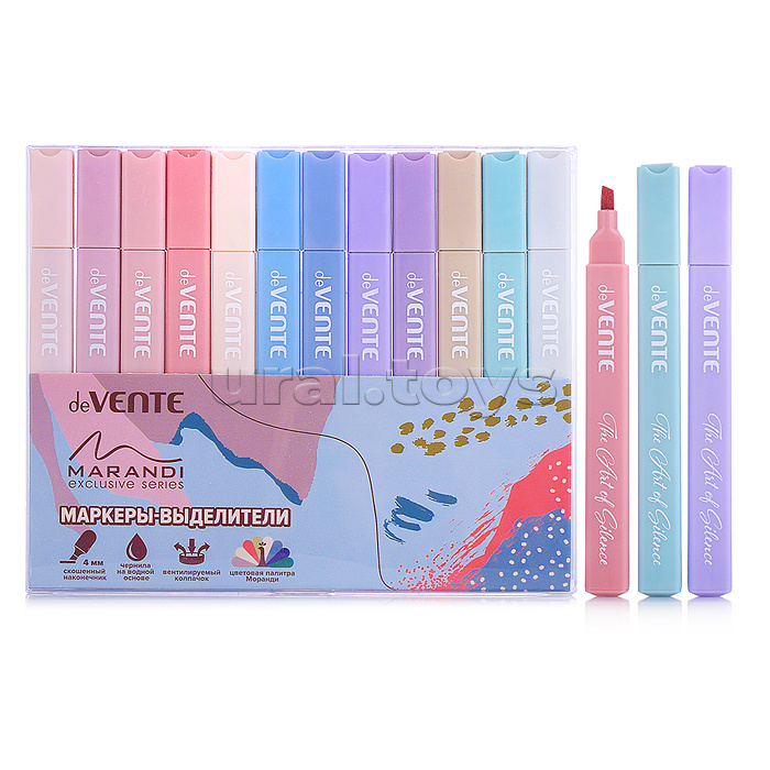 Набор маркеров-выделителей "Marandi" 12 цв, прямоугольный корпус, скошенный наконечник, ширина линии 1-4 мм, в пластиковом блистере