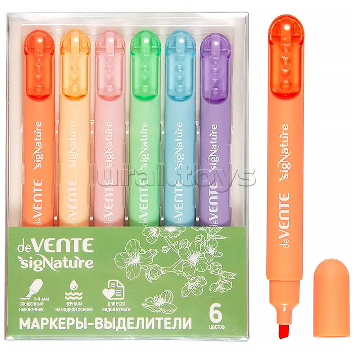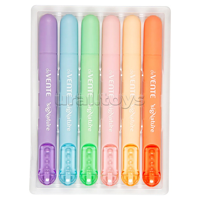 Набор маркеров-выделителей "SigNature" (6 цв) плоский корпус c клипом, скошенный наконечник, ширина линии 1-4 мм, в пластиковой коробке