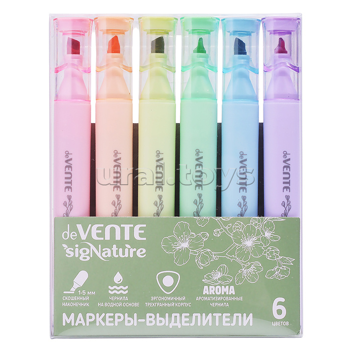 Набор маркеров-выделителей "Triolino. sigNature" (06 цв - гол., сир., роз., персик., зел., оливк.) ароматизированные, трёхгранный корпус, наконечник SOFT TIP, скошенный, ширина линии 1-5 мм, в пластиковой коробке