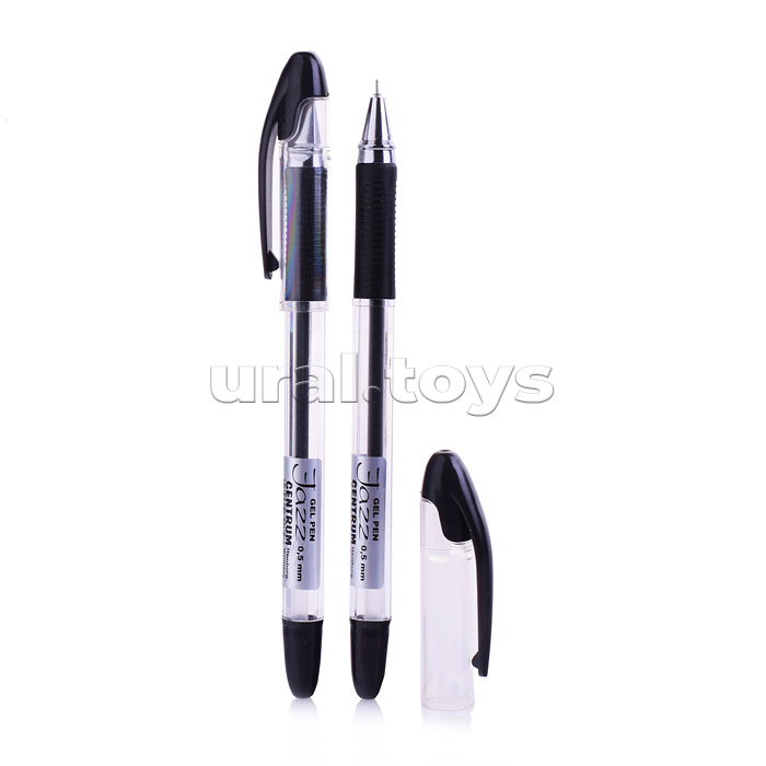 Ручка гелевая черная игольчатая "JAZZ" с металлическим наконечником, 0,5 мм., в прозрачном корпусе с резиновой вставкой в цвет чернил, клип серебряный