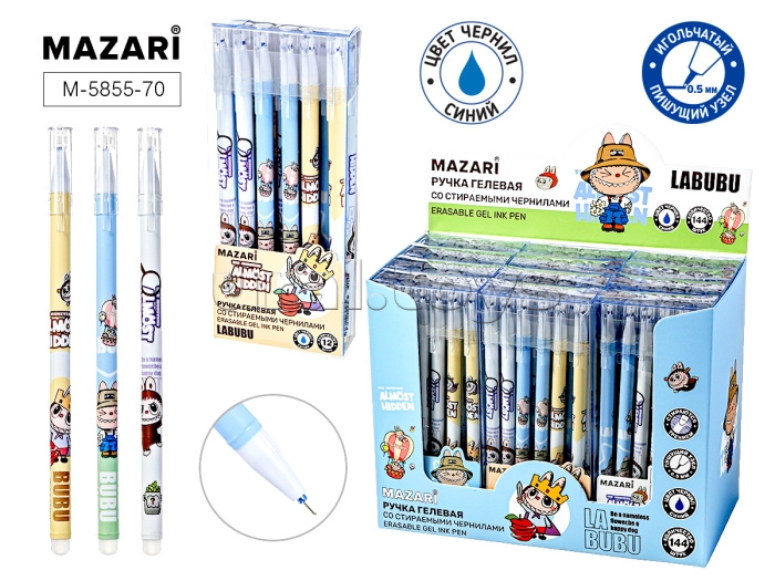 Ручка гелевая со стираемыми чернилами "Зубастик" синяя, игольчатый пиш. узел 0.5мм,