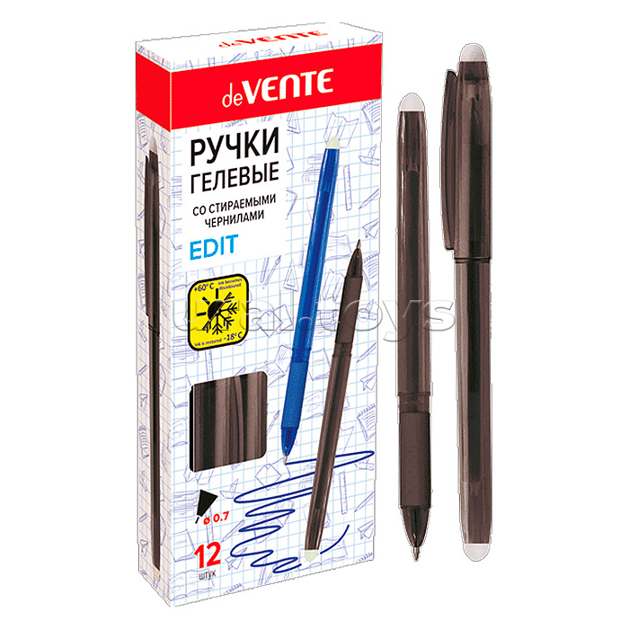 Ручка гелевая стираемая "Edit" d=0,7 мм, полупрозрачный черный корпус