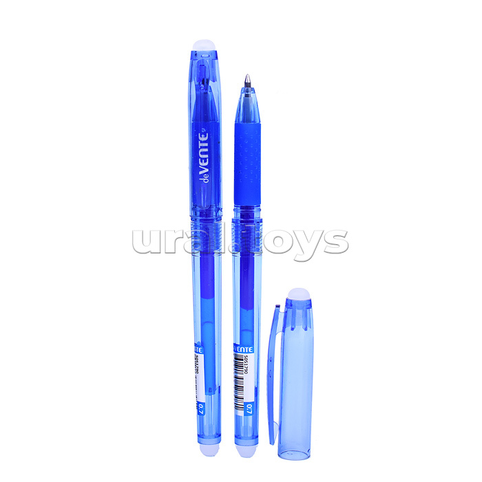 Ручка гелевая стираемая "Edit" d=0,7 мм, полупрозрачный синий корпус, с каучуковым держателем, с 2-мя ластиками (в колпачке и на конце корпуса) сменный стержень, индивидуальная маркировка, синяя