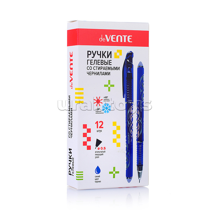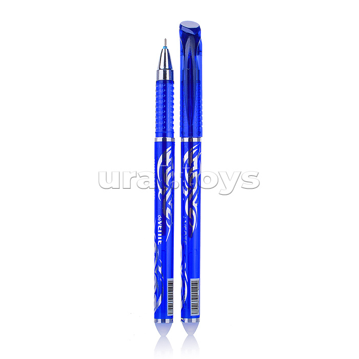 Ручка гелевая стираемая "Energery" d=0,5 мм, полупрозрачный синий корпус с серебристым дизайном, с ластиком, сменный стержень, индивидуальная маркировка, синяя