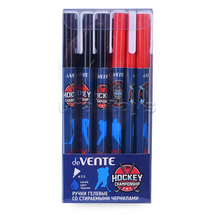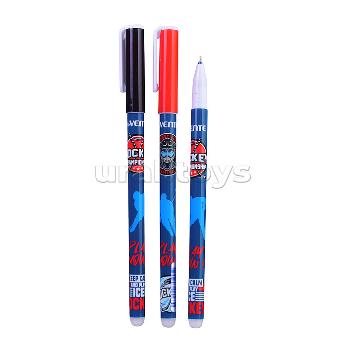 Ручка гелевая стираемая "Hockey" d=0,5 мм, 2 дизайна корпуса ассорти, с ластиком, синяя