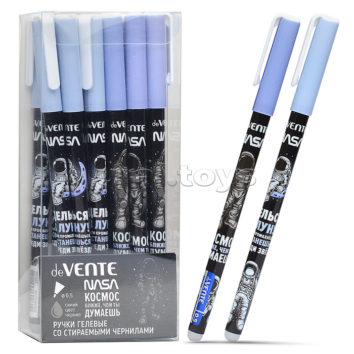 Ручка гелевая стираемая "NASA" d=0,5 мм, 2 дизайна корпуса ассорти, с ластиком, синяя