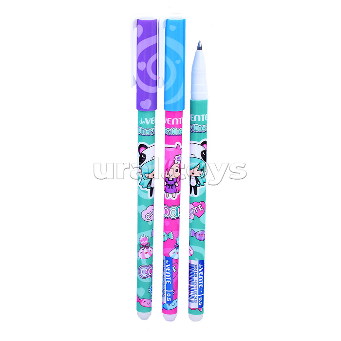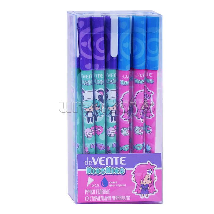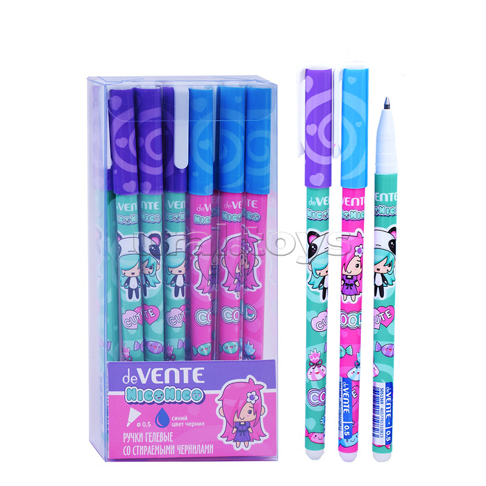 Ручка гелевая стираемая "NicoNico" d=0,5 мм, 2 дизайна корпуса ассорти, с ластиком, сменный стержень, индивидуальная маркировка, синяя