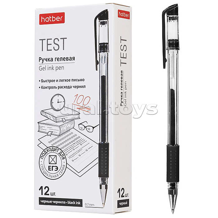 Ручка гелевая "Test" черная 0,7мм с резиновым грипом 12 шт. в картонной коробке