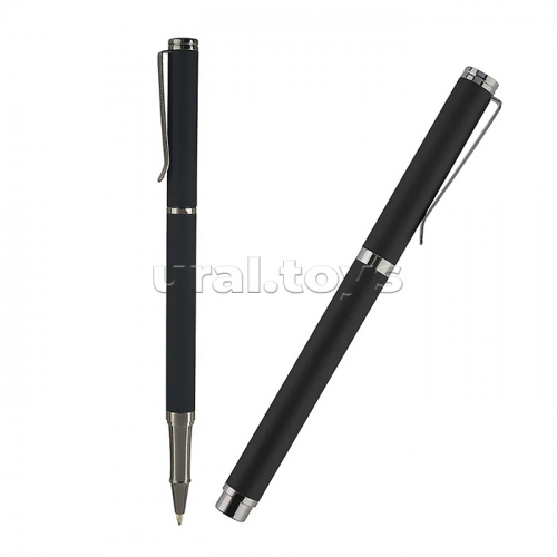 Ручка "Napoli" в тубусе круглой формы, 1,0 мм, синяя (корпус зеленый и зол, футляр черный)