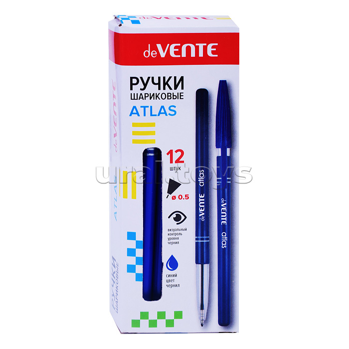 Ручка шариковая "Atlas" d=0,5 мм, синий корпус с прозрачным держателем, разборный корпус, сменный стержень, индивидуальная маркировка, синяя