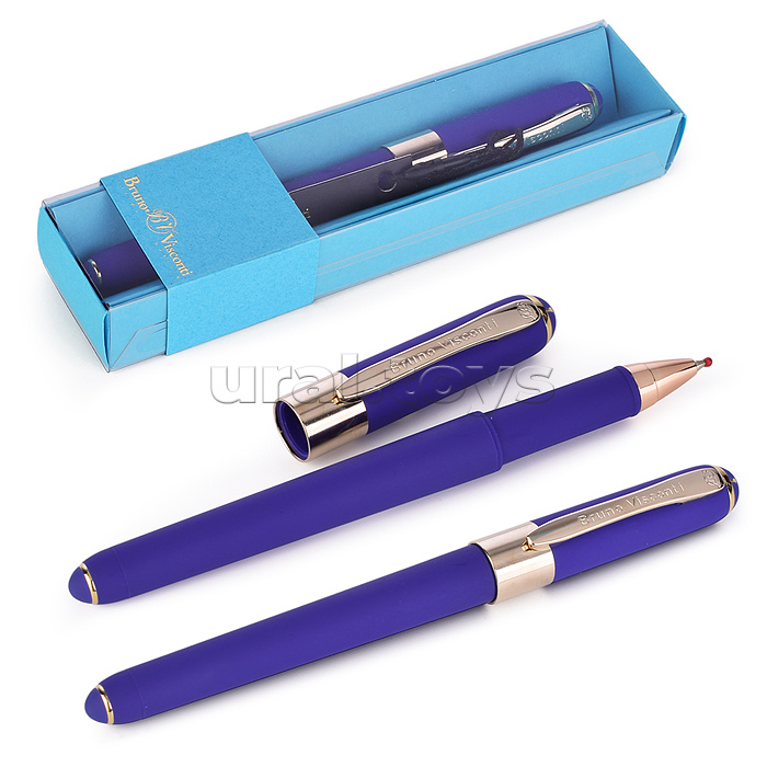 Ручка в футляре "MONACO" шариковая 0.5мм, синяя (сине-фиолетовый корпус, голубая коробка)