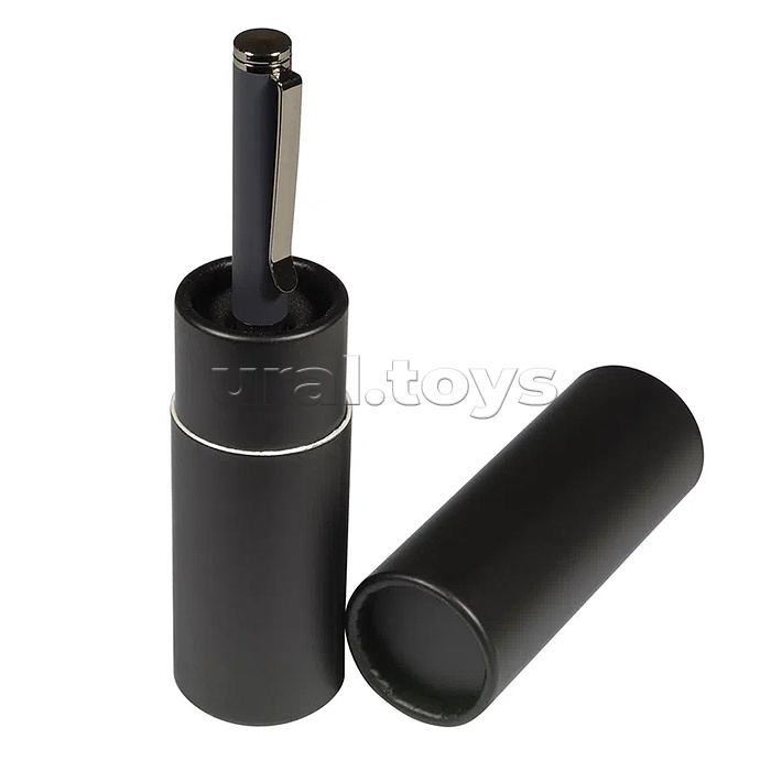 Ручка "Venezia Pragmatico" в картотнном тубусе, 1,0 мм, синяя (корпус серый, футляр черный)