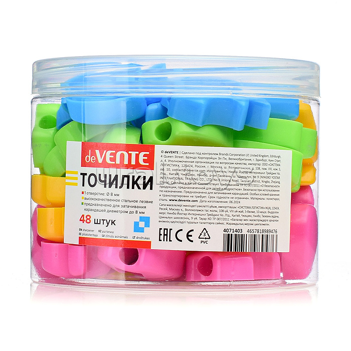 Точилка для карандашей "Apple" 1 отверстие, без контейнера, пластмассовая, в пластиковой тубе, ассорти