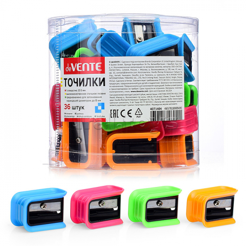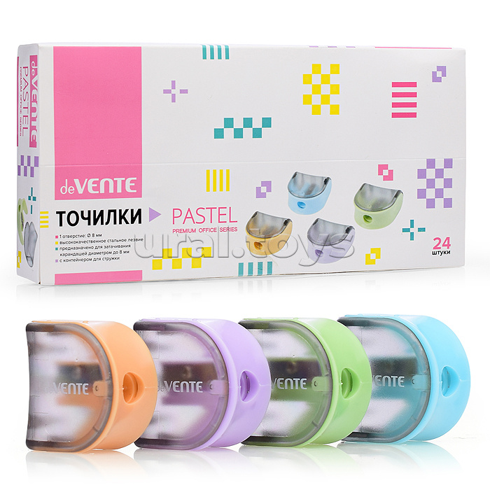 Точилка для карандашей "Pastel" 1 отверстие, с контейнером, пластмассовая, в картонной коробке, ассорти, индивидуальная маркировка