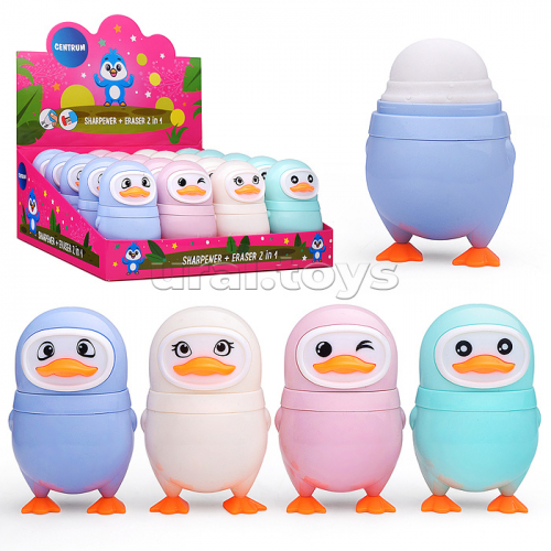 Точилка пластиковая с ластиком и контейнером "Penguin"