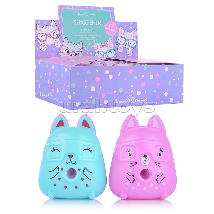 Точилка с контейнером, 1 отверстие "Funsharp. розовый котик", 2 цвета