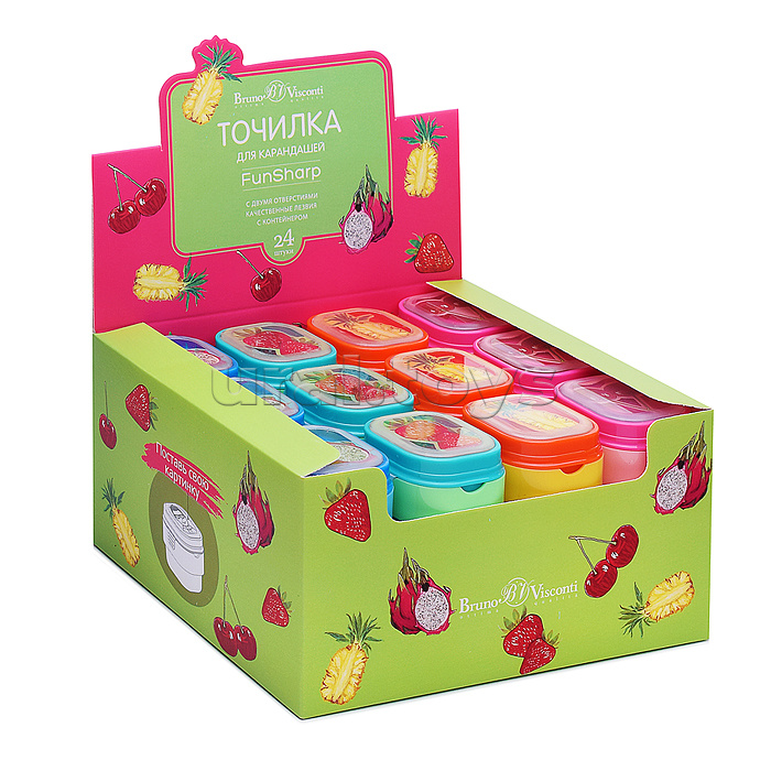Точилка с контейнером, 2 отверстия "Корзинка с ягодами" (4 вида)