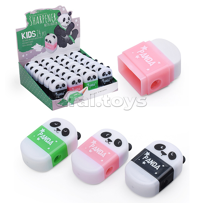 Точилка с контейнером и ластиком "FunGraphix. Панда", 3 цвета