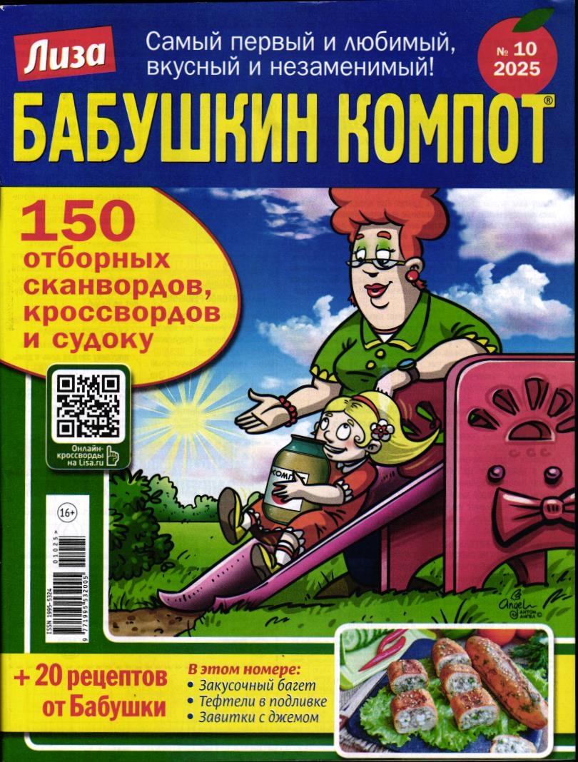 Журнал «Лиза. Бабушкин компот» - это ежемесячное развлекательное издание, толстый сборник сканвордов. В каждом номере журнала - более 200 сканвордов, кроссвордов и судоку. А в середине журнала - вкусный сюрприз для читателей: специально для вас Бабушка приготовила великолепный обед! Самые разные блюда, от закусок до сладкого, вы научитесь готовить вместе с Бабушкой. 20 рецептов удобно расположены на внутренних страницах каждого номера - их можно легко отделить от журнала и собирать свою кулинарную библиотечку. Читатели присылают варианты приготовления своих фирменных и просто любимых блюд, а Бабушка определяет лучший рецепт месяца. Победитель получает денежную премию - 500 рублей. Также в каждом номере журнала - веселые карикатуры и бесценные Бабушкины кулинарные советы.
