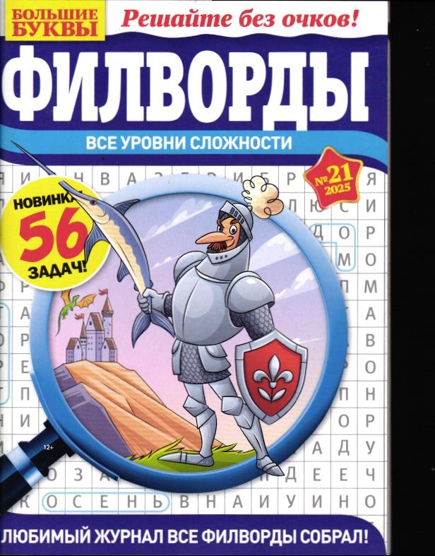 Этот уникальный журнал наполнен суперинтересными филвордами с крупным шрифтом. Не умеете разгадывать задачи? Сейчас научитесь! Филворд - это кроссворд, в котором все слова уже есть, но они спрятаны и их нужно найти. Мы предлагаем вам филворды двух видов. В одних слова изгибаются под прямым углом. В других - расположены по вертикали, горизонтали, диагонали.