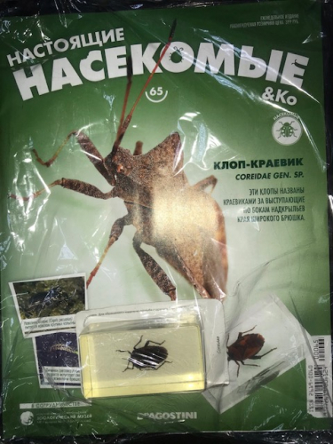 КОЛЛЕКЦИЯ ЖУРНАЛОВ DeAGOSTINI "Настоящие насекомые & Ко " + настоящее насекомое, залитое в прозрачный пластик№65 Клоп-краевик