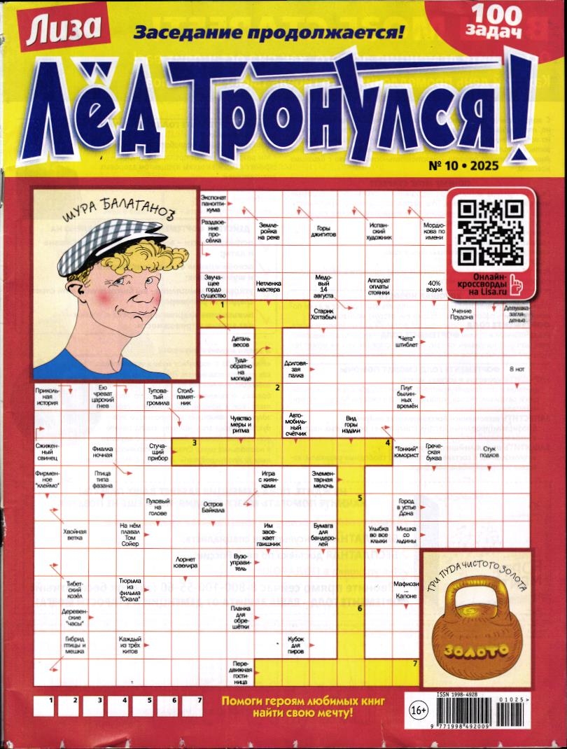 Лед тронулся!» - это издание с названием-цитатой, журнал из кроссвордного семейства «Лизы». «Лиза. Лед тронулся!» - это сканворды, карикатуры, юмор, судоку и головоломки. Персонажи известных романов «Двенадцать стульев» и «Золотой теленок» поселились на страницах нового развлекательного издания и помогают читателям разгадывать сканворды. Остап Бендер, Киса Воробьянинов, отец Федор, Паниковский, миллионер Корейко, Шура Балаганов и другие хорошо известные герои произведений Ильфа и Петрова подсказывают правильные решения. А читатели, воспользовавшись их подсказками, могут стать обладателями денежных призов. Вписав найденные в сканвордах буквы в купон, они получают шанс выиграть 500 рублей! Каждый месяц читателей ждет новая встреча с кроссвордно-юмористическим журналом «Лиза. Лед тронулся!», и - будьте бдительны - заседание продолжается!