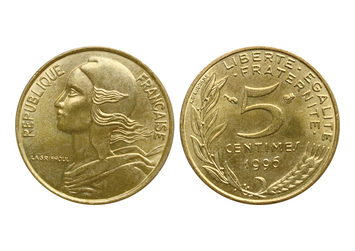Вложение: 1 динар (Хорватия), 5 сантимов (Франция)