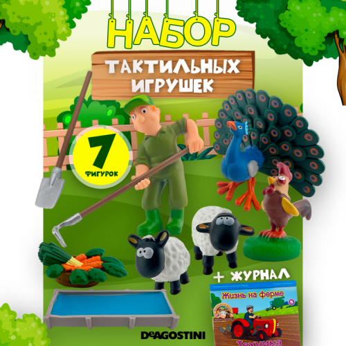 В комплекте вы получите журнал и набор игрушек: Ёж Хрум, баран Нептун, павлин Клементи, ягненок Беби, конь Буян. Симпатичные персонажи, забавные животные и детали для строительства твоей собственной фермы в новой коллекции «Животные на Ферме Василия и Василисы». Издательство ДеАгостини.С каждым выпуском коллекции твоя ферма будет пополняться новыми животными и различными постройками, а также огородом, прудом и другими обязательными для настоящей фермы деталями. Собери ферму со всеми её обитателями!Вместе с коллекцией забавных фигурок, созданных на основе рисунков из журнала, ты сможешь собрать свою собственную ферму с людьми, животными, обстановкой и даже необходимыми хозяйственными инструментами. Наши симпатичные персонажи, фермер Василий и его жена Василиса, а также собака Полкан, корова Зорька, бык Огонек, ослик Бублик и многие другие проводят тебя в познавательный мир интересных открытий и сюрпризов!Журнал Животные на Ферме расскажет об интересных фактах и увлекательных историях из жизни животных. Он красочно иллюстрирован тематическими картинками и содержит ответы на все вопросы, связанные с фермерской жизнью.