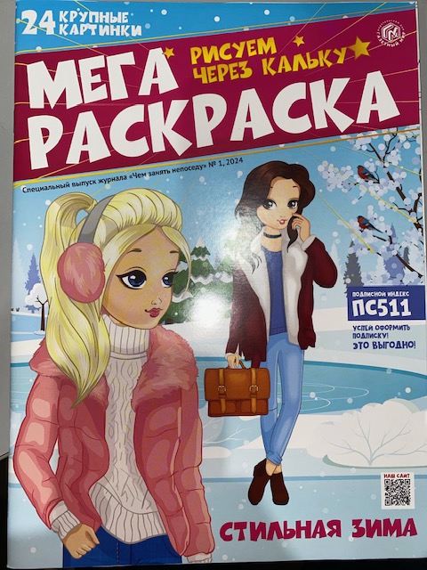 • АртикулМега раскраска (Рисуем через кальку)1*24 Стильная зима (старая цена 20)