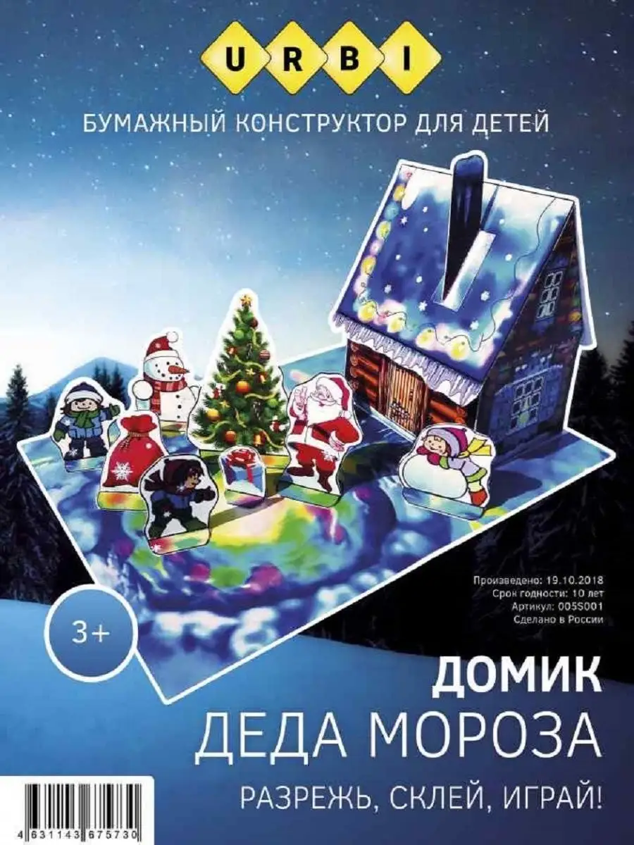 Развивающая игра для детей от 3-х лет. Бумажный 3D конструктор. Домик Деда Мороза