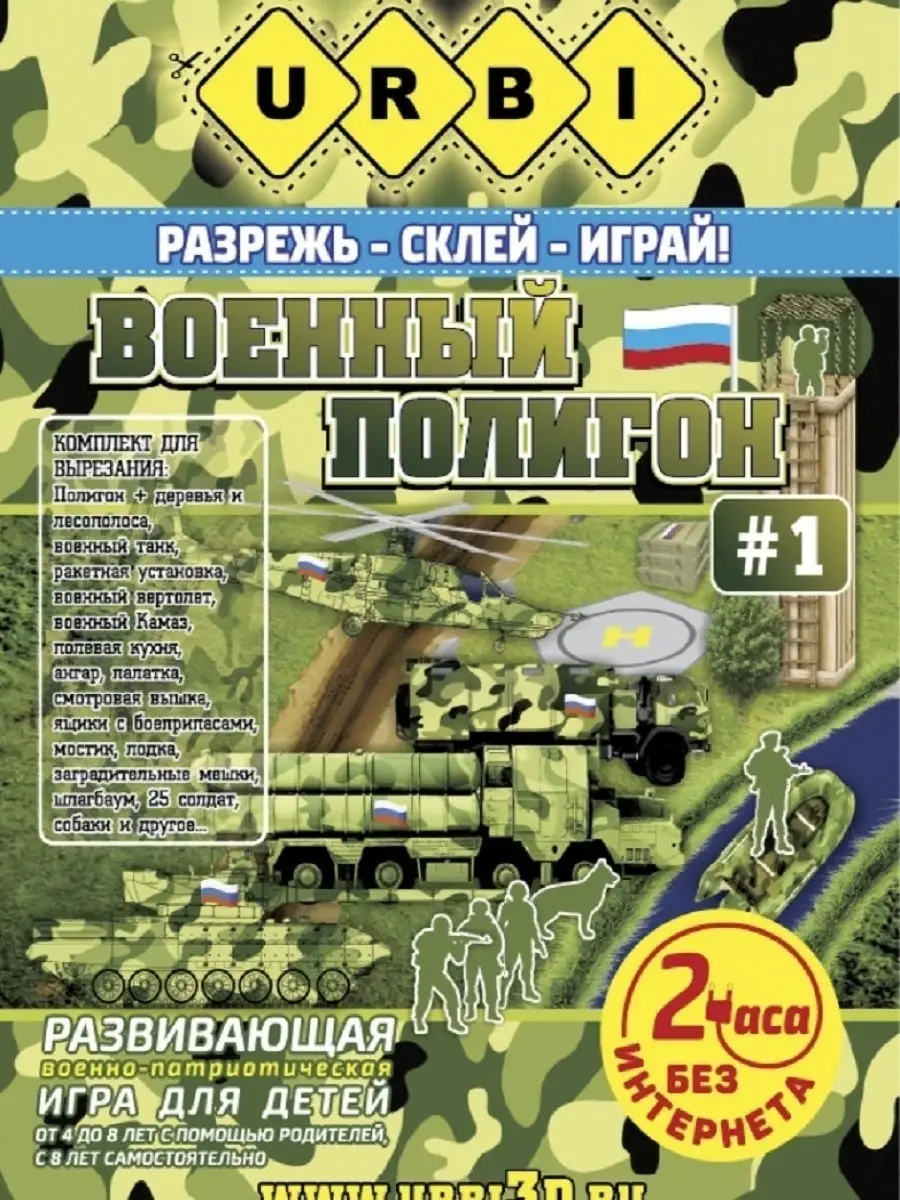 • АртикулРазвивающая военно-патриотическая игра для детей от 4-х лет. Бумажный 3D конструктор. Военный полигон №1