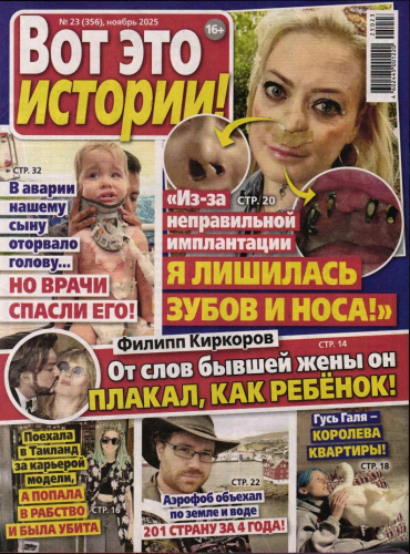 «Вот это истории» — это принципиально новый подход к публикации историй о реальной жизни: без приукрашивания, но с уважением к читателю и сочувствием к героям. Курьезные истории и драмы, написанные в эмоциональном ключе. Фокусируется на обычных людях, но не забывает о знаменитостях, кулинарии, путешествиях, советах и гороскопе. Отвлекает читательниц от повседневности, заставляет увидеть жизнь во всем ее многообразии. Журнал вдохновляет женщин, делая их жизнь насыщенной и комфортной.