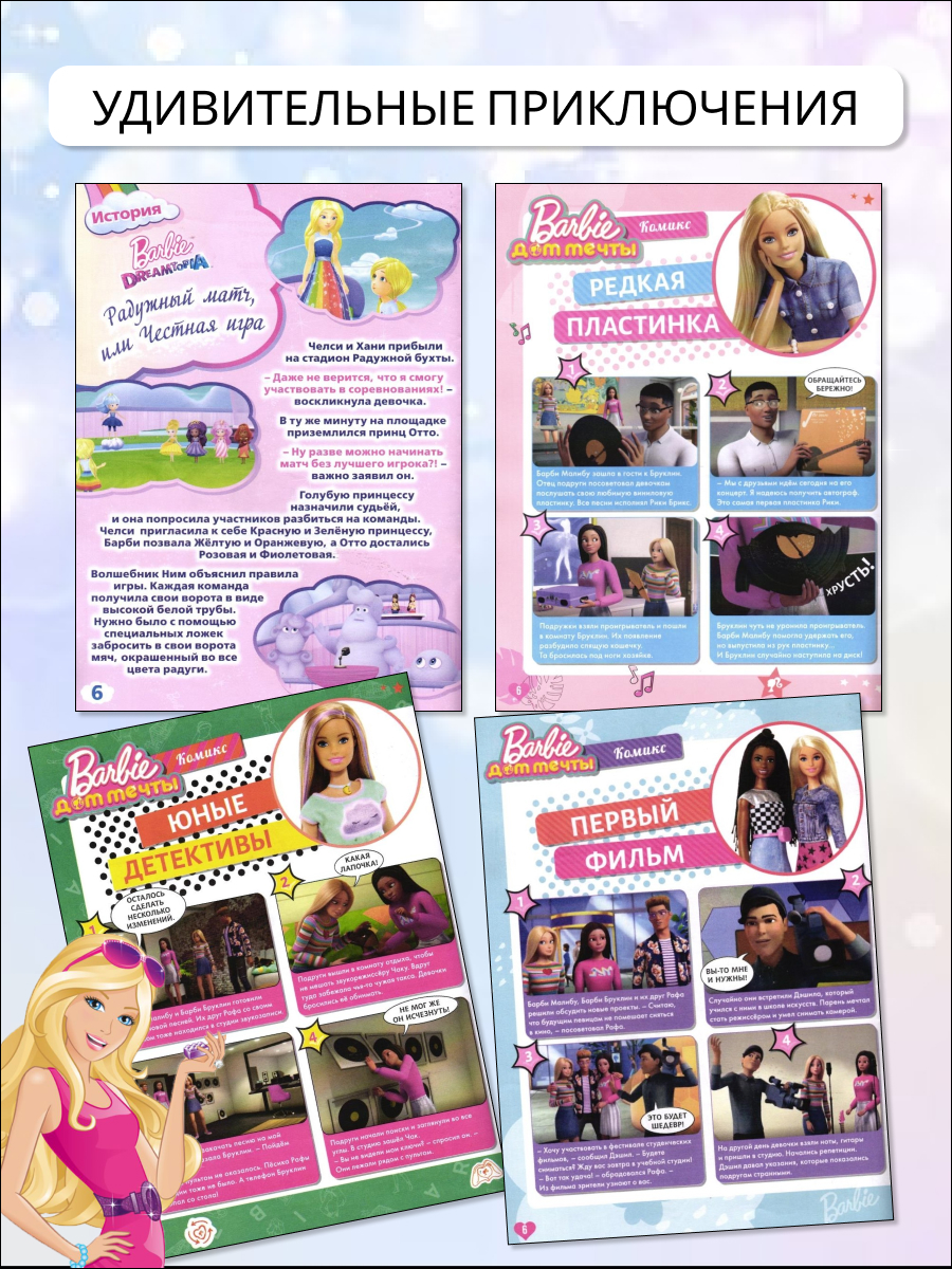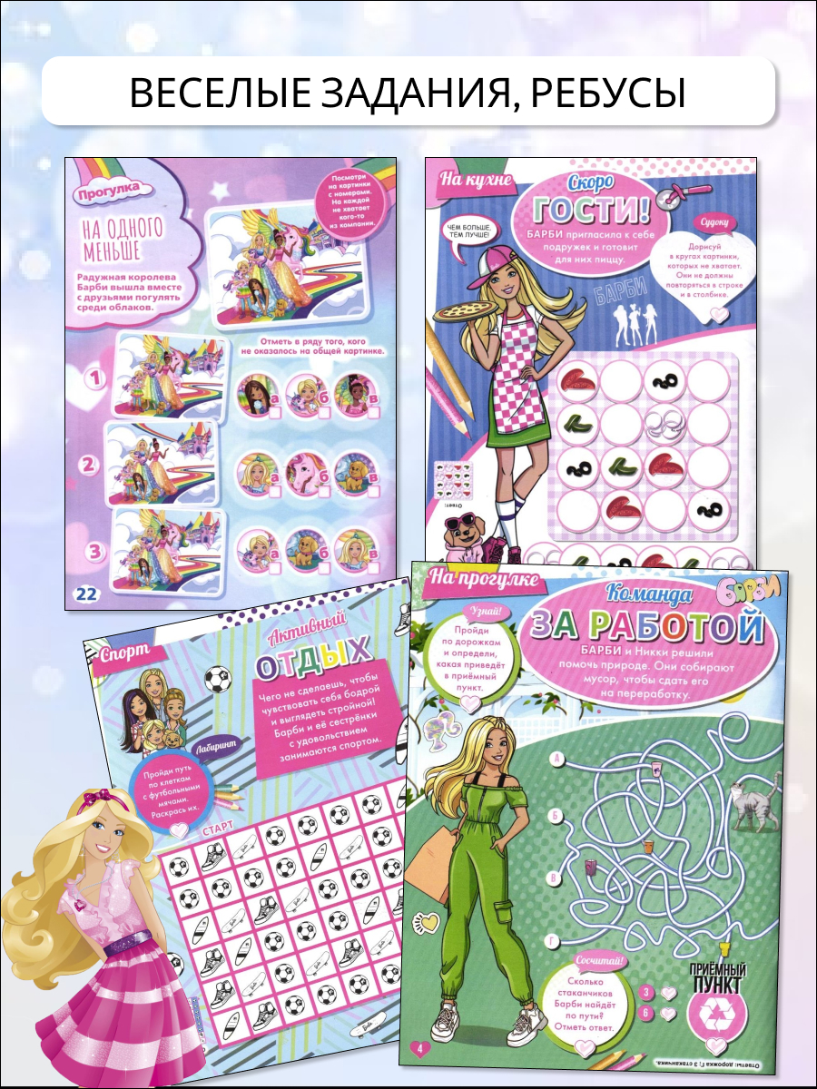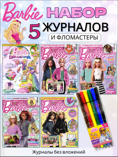 Комплект журналов для девочек : вложение Игровой набор "На даче". Играем с Барби 5 по цене 1 - это комплект из пяти красочных детских журналов 2022-2023гг и двух уникальных подарочных вложений для девочек, которые хотят быть похожими на красавицу и умницу Барби! В каждом номере журнала: истории о Барби и её подругах, мода, раскраски, замечательные самоделки, загадки, головоломки. Всем девчонкам нравится читать и играть вместе с Барби! Недорогой и качественный подарок для ребёнка, совмещающий игры и чтение в одном комплекте. Отличный выбор, если Вы хотите приобрести подарки для класса или группы.