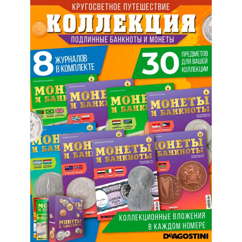 Представляем вашему вниманию уникальный журнал для взрослых и детей – коллекционные издания "Монеты и банкноты". Это альбом нумизмата создан специально для любителей коллекционирования, а также для семей, которые хотят увлекательно и познавательно провести время вместе. Набор включает 8 изданий с приложениями, которые не только разнообразят вашу коллекцию, но и расширят знания о мире денег.