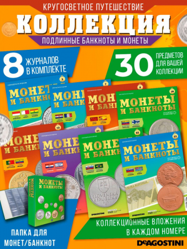 W0503 Комплект Монеты и банкноты из 8 ми журналов + папка