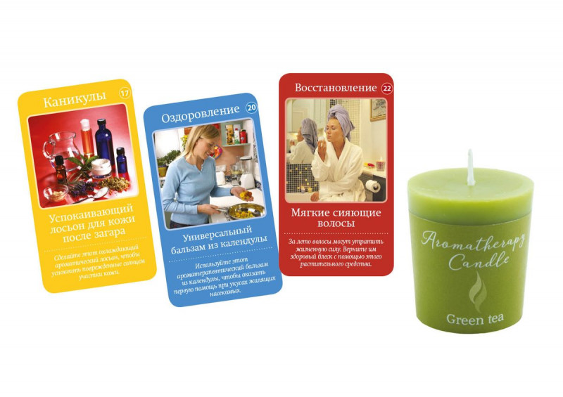 Журнал № 058 Путь к гармонии (Арома свеча Зеленый чай, 3 карты рецептов для здоровья)