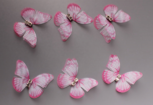 Бабочки шифоновые со стразами (бело-розовый) 3 см (10 шт)