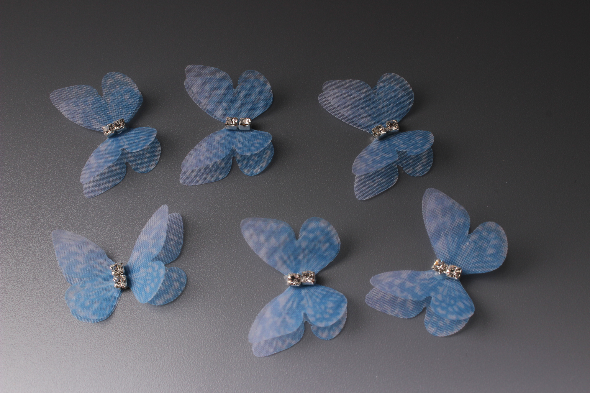 Бабочки шифоновые со стразами (голубой) 3 см (10 шт)