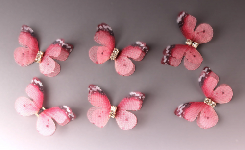 Бабочки шифоновые со стразами (красный) 3 см (10 шт)